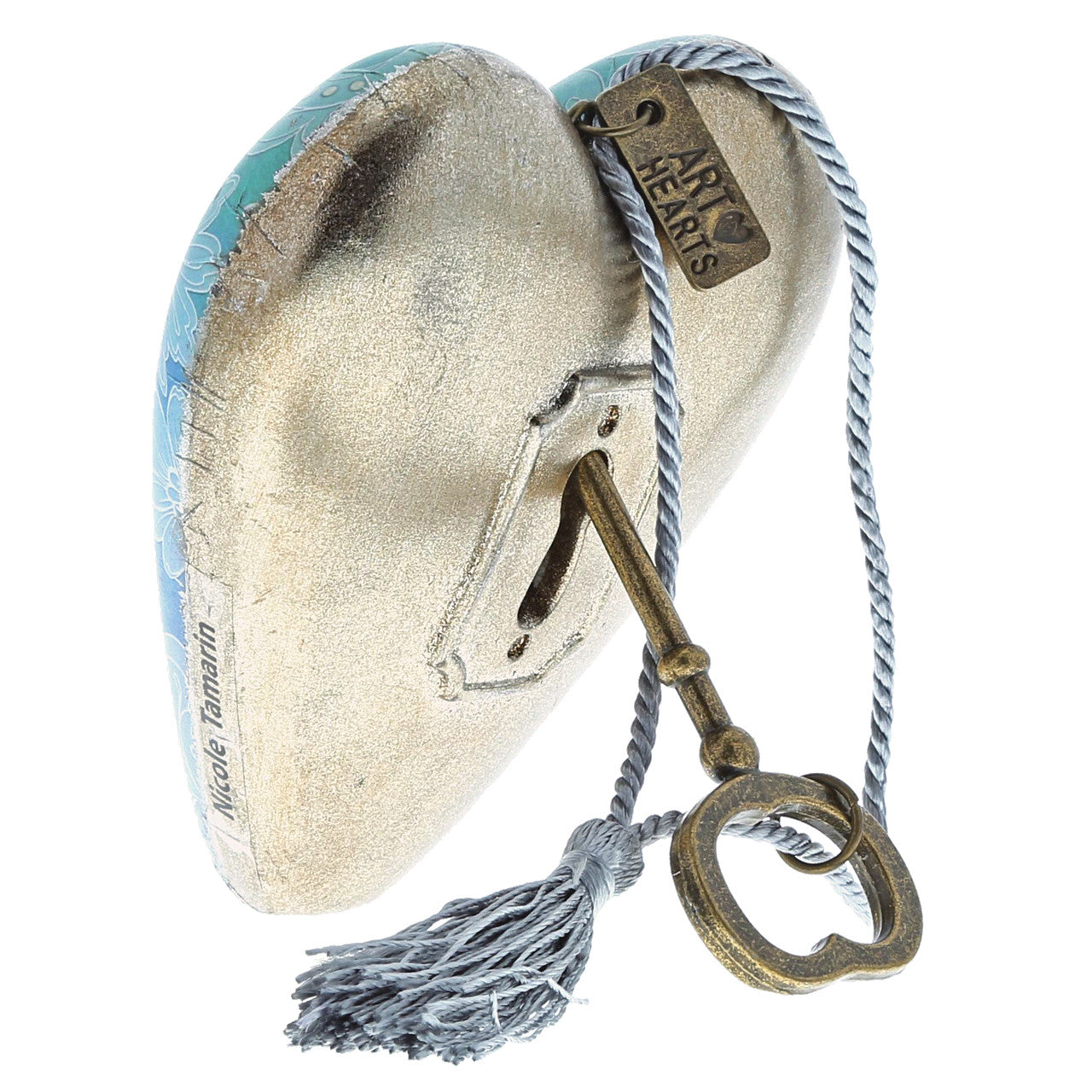 Comes with special packaging and ornamental key. The Art Heart is uniquely designed to either hang as a conventional ornament with a hanging cord or to stand. A beautiful, ornamental key is included, which serves as an easel when placed in the keyhole opening at the back of the sculpture, enabling it to stand.