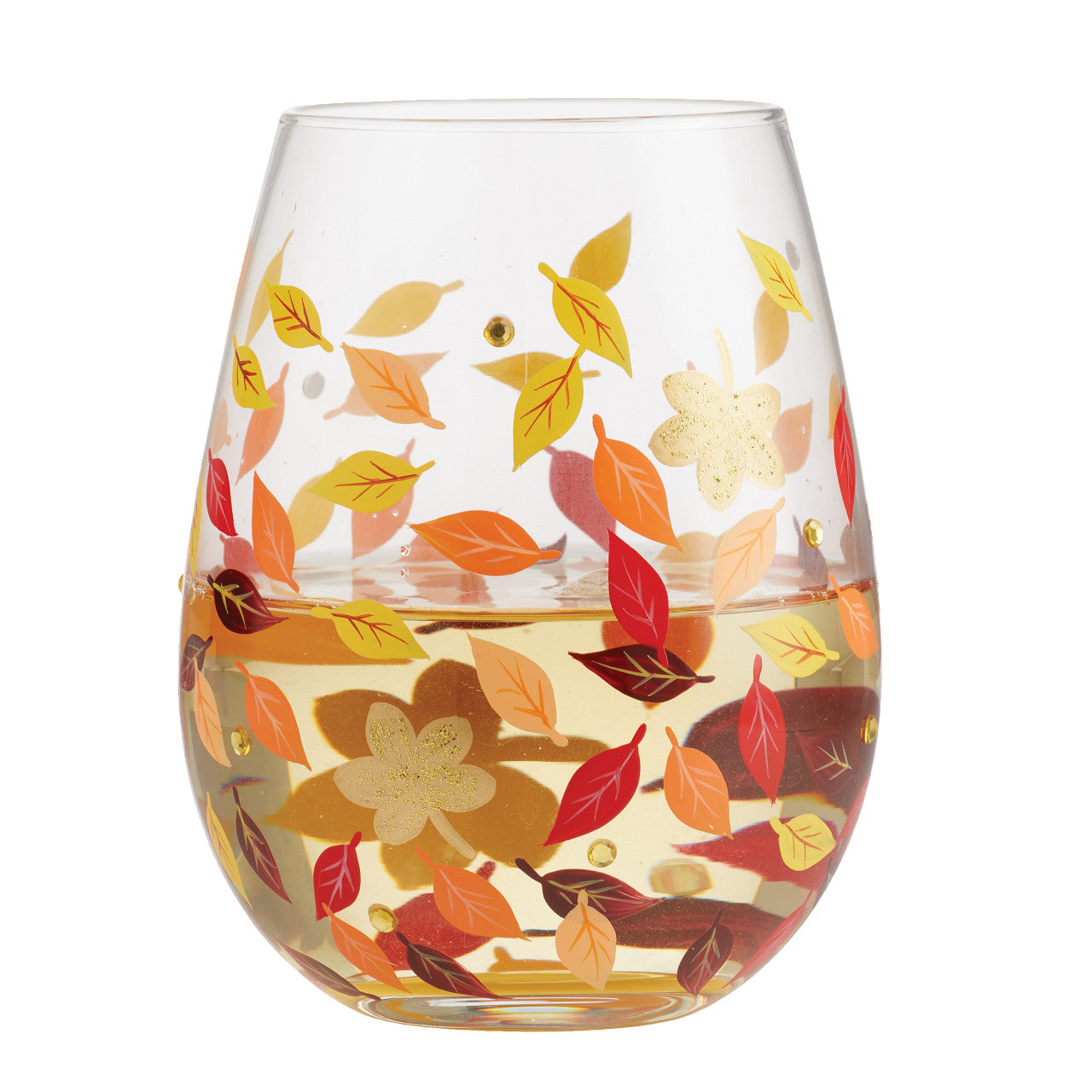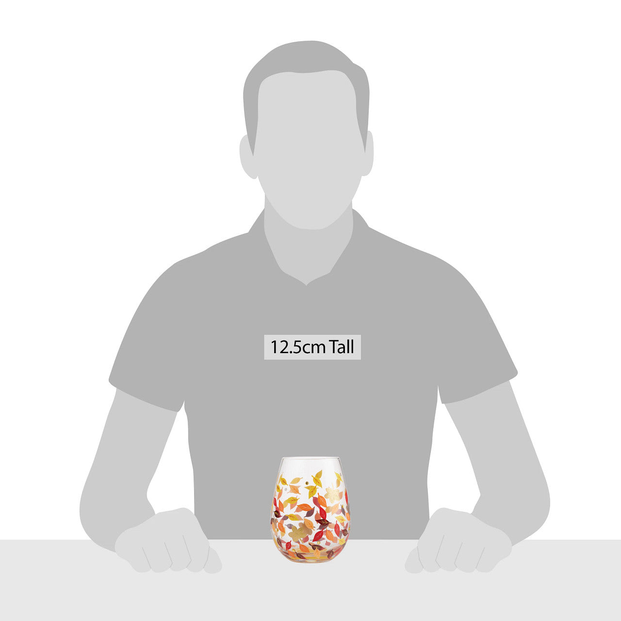 Enjoy the vibrant colours of the season with the Leaves a Million Stemless Wine Glass. Hand painted with autumn shades of red, orange and yellow, it brings a warm, inviting atmosphere to any occasion. With its falling leaves design, make it your go-to glass for the changing of the seasons.