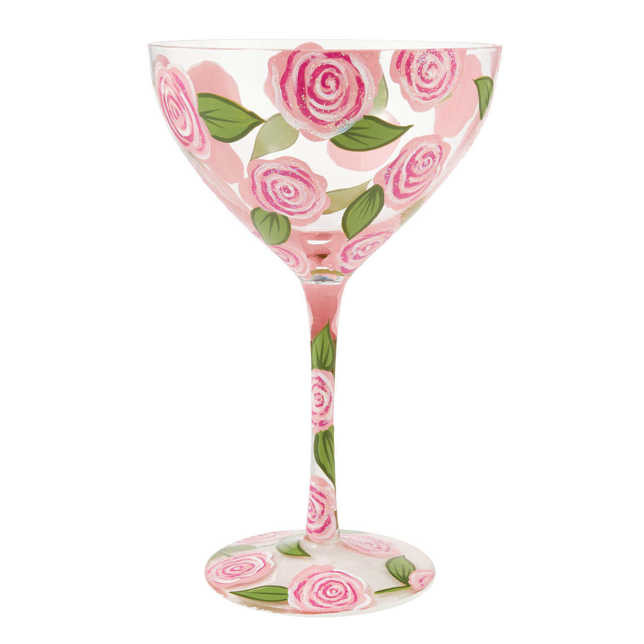 This beautiful and unique Vodka Rose Puch Cocktail Glass is the perfect accessory for any cocktail occasion. Rose pink with an intricate floral design and green leaves, the glass is hand painted and features a cocktail recipe printed underneath. Enjoy your drinks with the elegance and sophistication of this stunning glass.