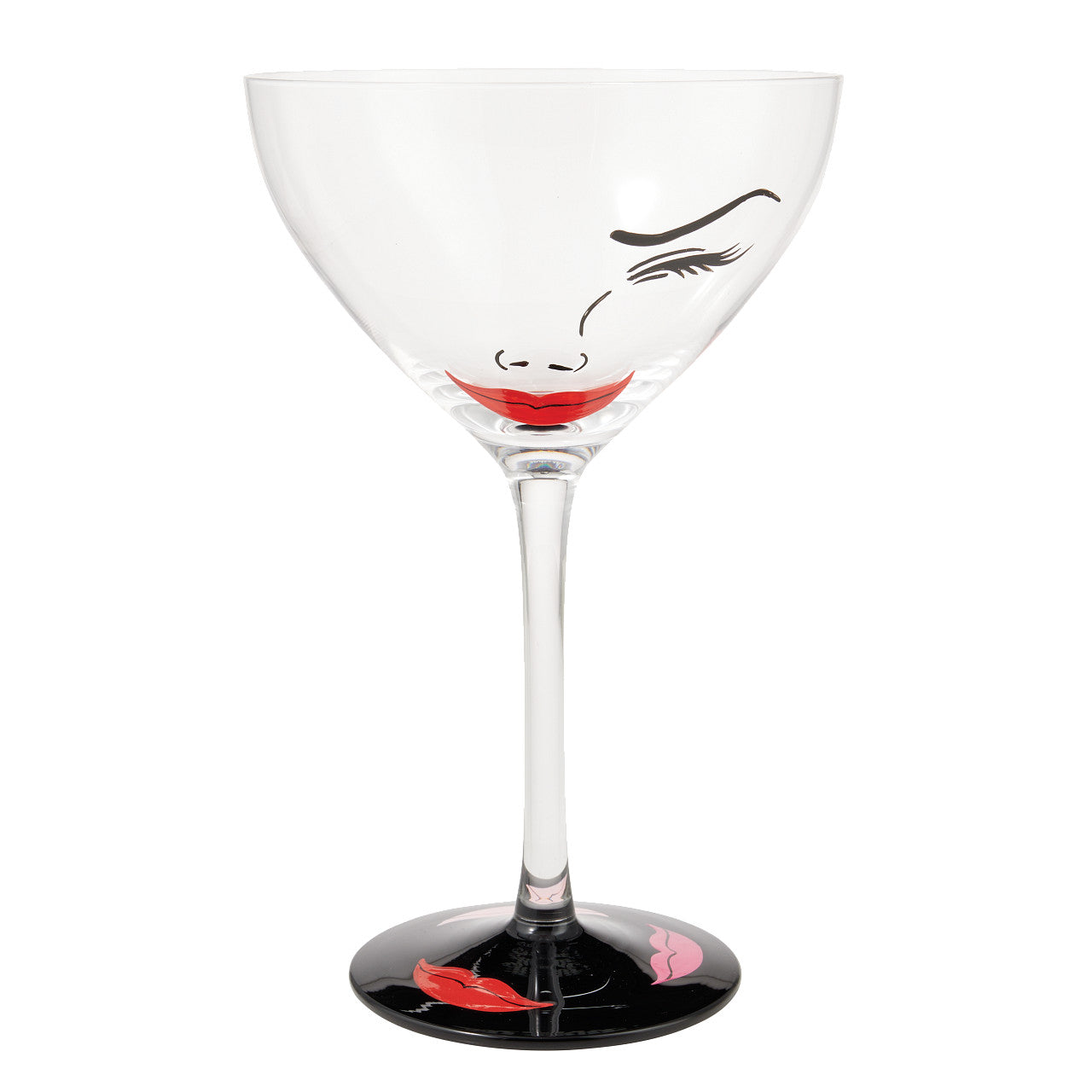 Sip your favorite cocktail from our unique and stylish Flirtini Cocktail Glass. Crafted with flirtatious lips and hand-painted designs, this glamorous glass is sure to turn heads. A bonus surprise-a cocktail recipe-is included on the bottom of the glass, giving you more bang for your buck. Make your next gathering unforgettable with this fun and elegant glassware.