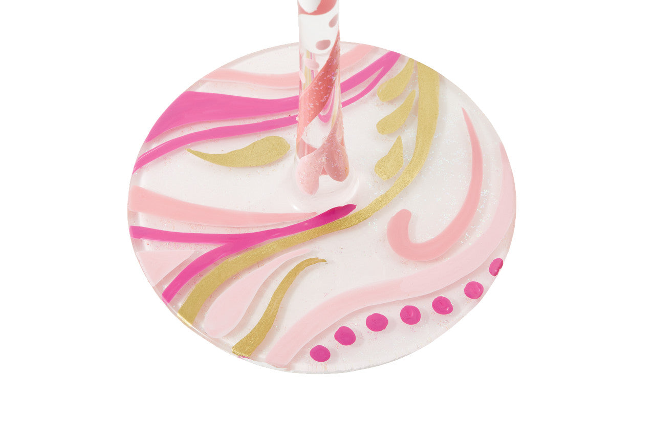 This hand painted Cosmopolitan Cocktail Glass adds a touch of sophistication to your entertaining. The elegant pink and gold tones give this glass a classic yet contemporary feel. With the signature Cosmopolitan cocktail recipe printed on the base of the glass, you can enjoy this signature drink in style.
