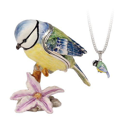 Pewter cast, enamelled trinket box embellished with Austrian crystals.