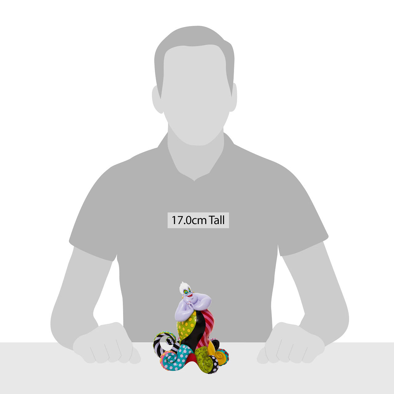 Redesigning the antagonist from The Little Mermaid, Ursula gets a chic remodel of trendy tentacles. With bold colour and compelling pattern, contemporary artist Romero Britto captures the fun and whimsy of Disney. Figurine is made from cast stone. Product is supplied in branded gift box. Unique variations should be expected as product is hand painted. Not a toy or children's product. Intended for adults only.