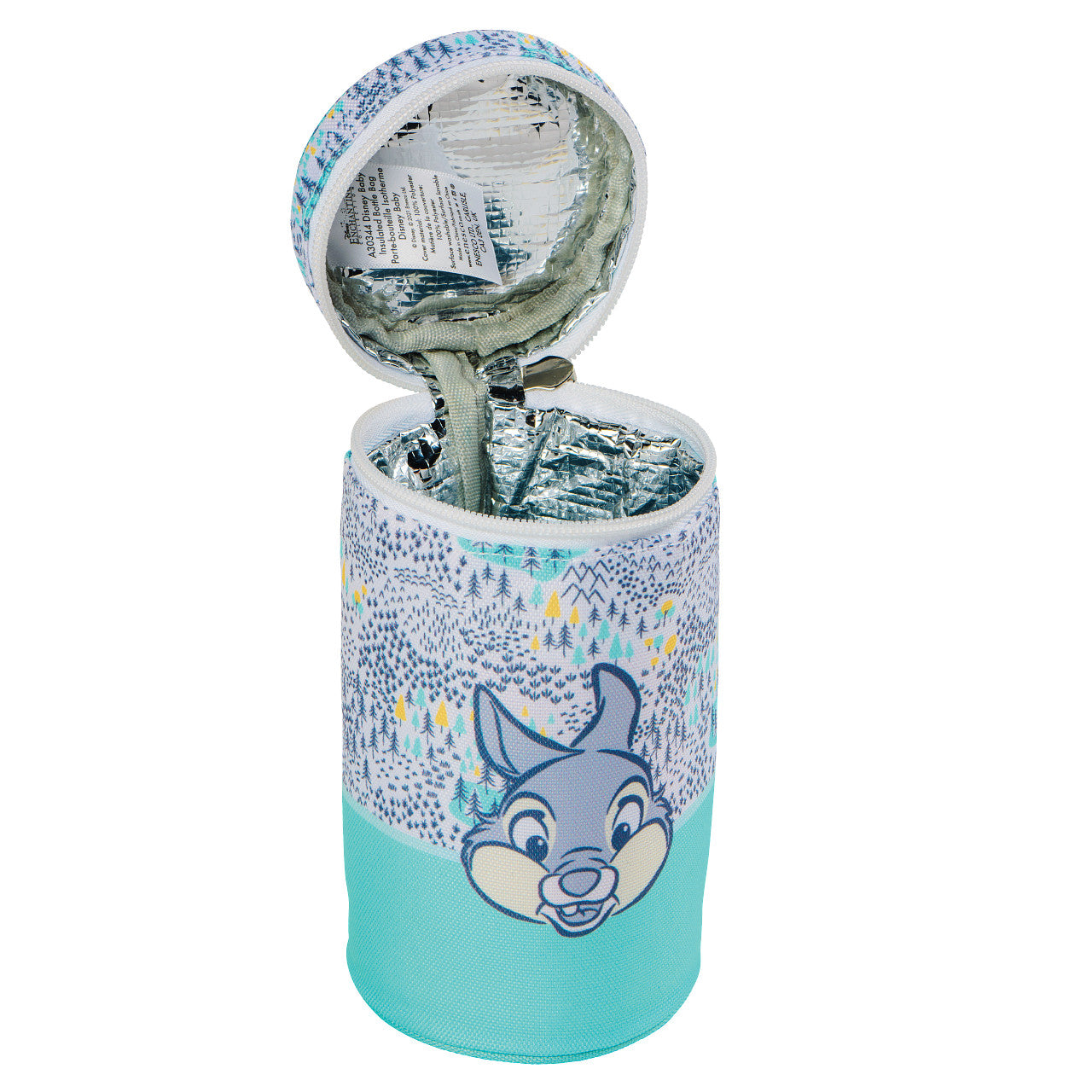 Our portable Classic Disney insulated bottle bag makes feeding on the go easy. Can be used to keep bottles hot or cold ideal for your hungry little baby. The cute design ensures it fits perfectly in your Classic Disney baby changing bag, stroller organiser and the changing messenger bag so collect them all. Thumper allows this bottle bag to be gender-neutral and perfect for any baby shower gift. Enesco is proud to present its brand-new licensed Disney Baby Collection. Made from 100% Polyester and surface washable.