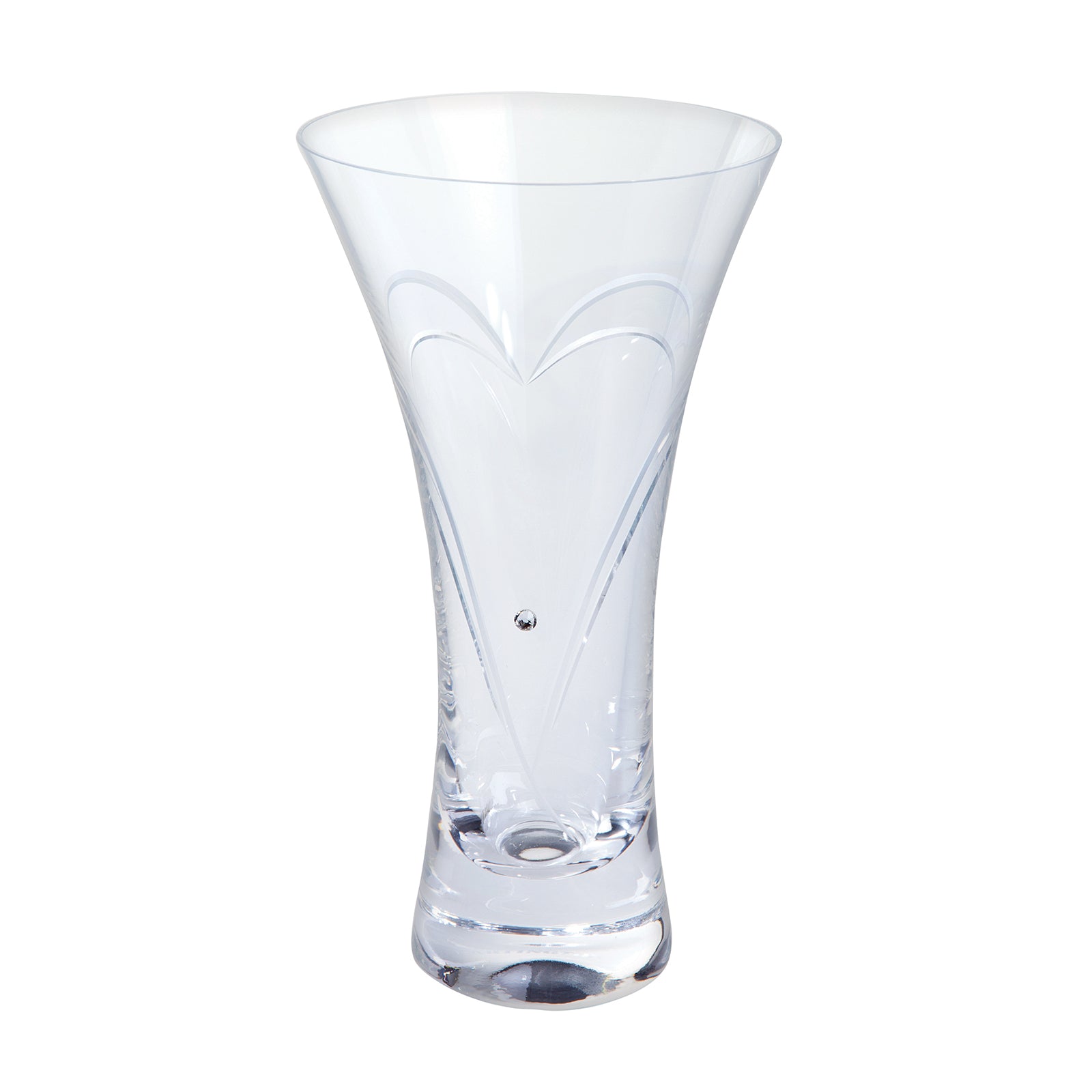 Embellished with Crystals from Swarovski ® and a hand engraved Heart motif this lovely vase is a versatile choice suitable for most floral arrangements.