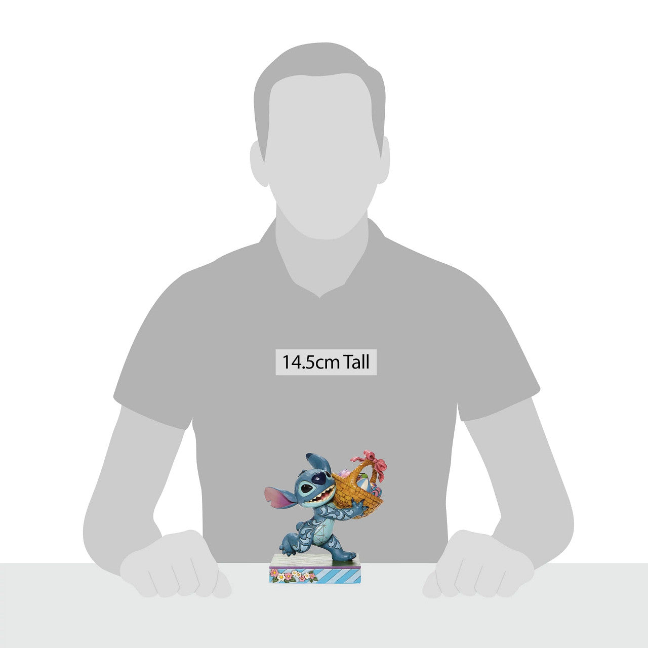 Mischievous Stitch has taken off with your Easter basket so try and catch him if you can or entice him with his favourite, "Coconut Cake"| Designed by Jim Shore, this fun-loving Disney Traditions piece is hand-painted in cheery springtime hues. Made from cast stone. Unique variations should be expected as this product is hand painted. Packed in a branded gift box. Not a toy or children's product. Intended for adults only.