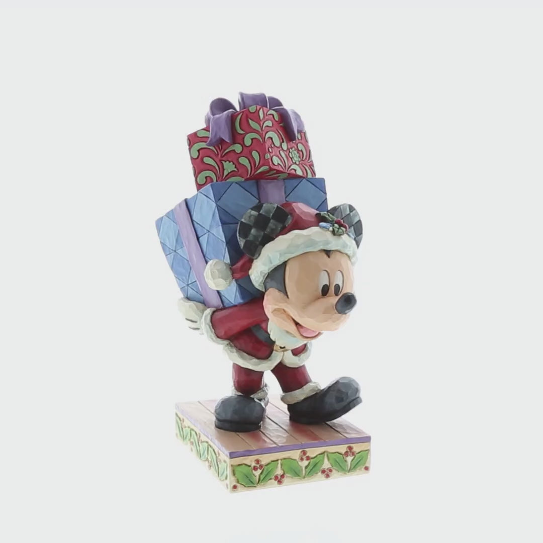 There is a creature stirring in the house - and it's a mouse| Dressed as Santa Claus and carrying a stack of presents, Mickey delivers holiday cheer and jolly jingles wherever he goes. Bring Disney home for the holidays with Jim Shore. Hand painted and hand crafted from high quality cast stone.