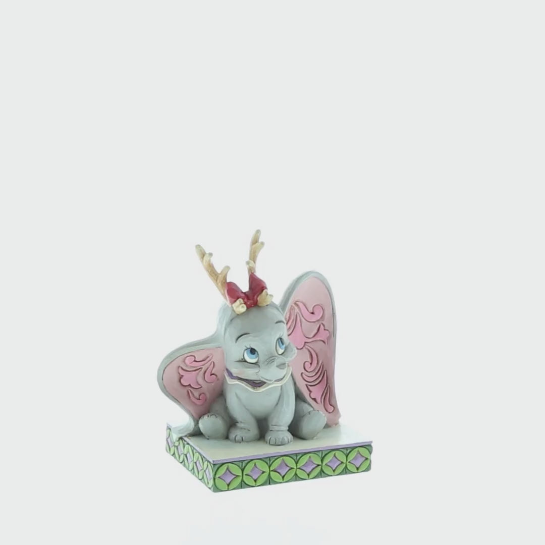 "Santa's Cheerful Helper" Dumbo, the sweetest elephant with the largest ears, dons antlers to help deliver presents this season. Already gifted with the power of flight, he'll make a lovely reindeer for Santa's sleigh in this Jim Shore classic. Hand painted and hand sculpted from high quality cast stone.