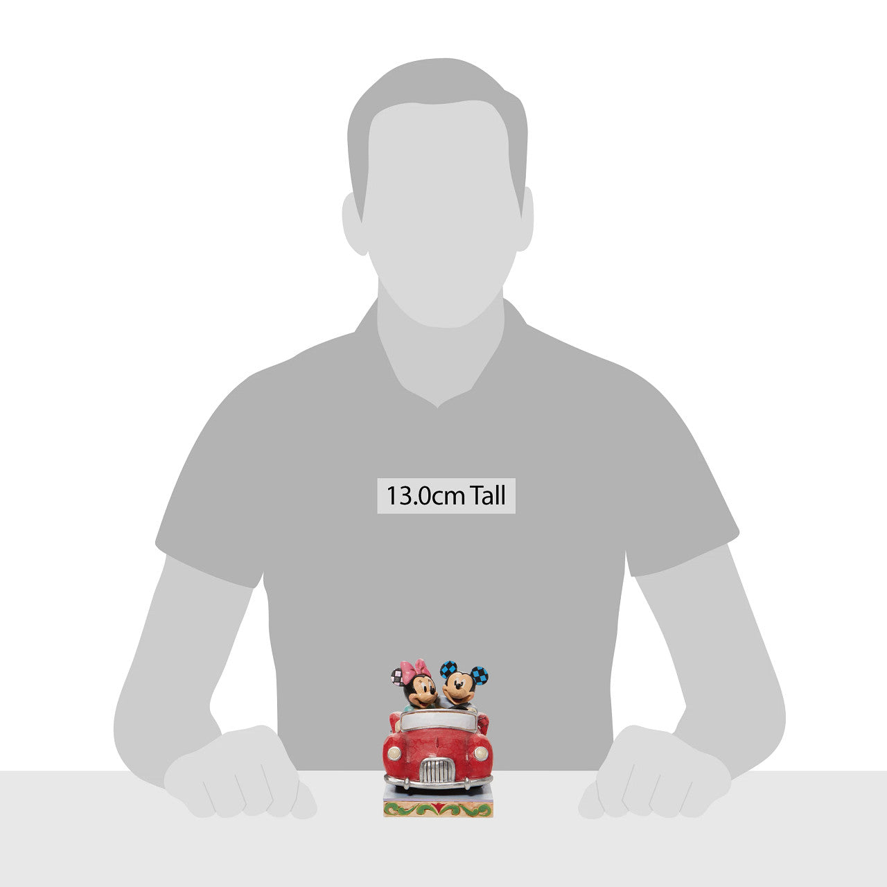 "A Lovely Drive" This exciting design from Jim Shore's Disney Traditions line, features Mickey and Minnie Mouse on a joy ride. Driving a red roadster with patchwork details, Mickey and his girl cruise around town in style. Made from cast stone. Packed in a branded gift box. Unique variations should be expected as this product is hand painted. Not a toy or children's product. Intended for adults.