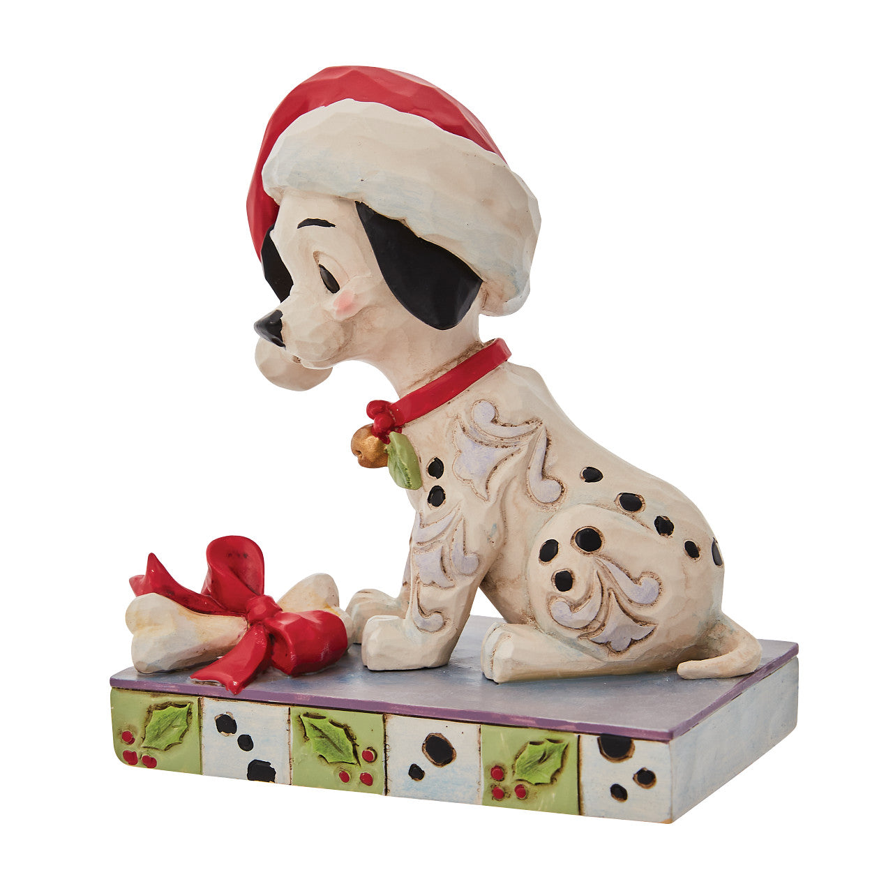 With one hundred and one brothers and sisters, Christmastime is a delight for Lucky. Enjoying the winter in London, Lucky savors a bone while he wears holly and a Santa hat decked out in Jim Shore's intricate detail.