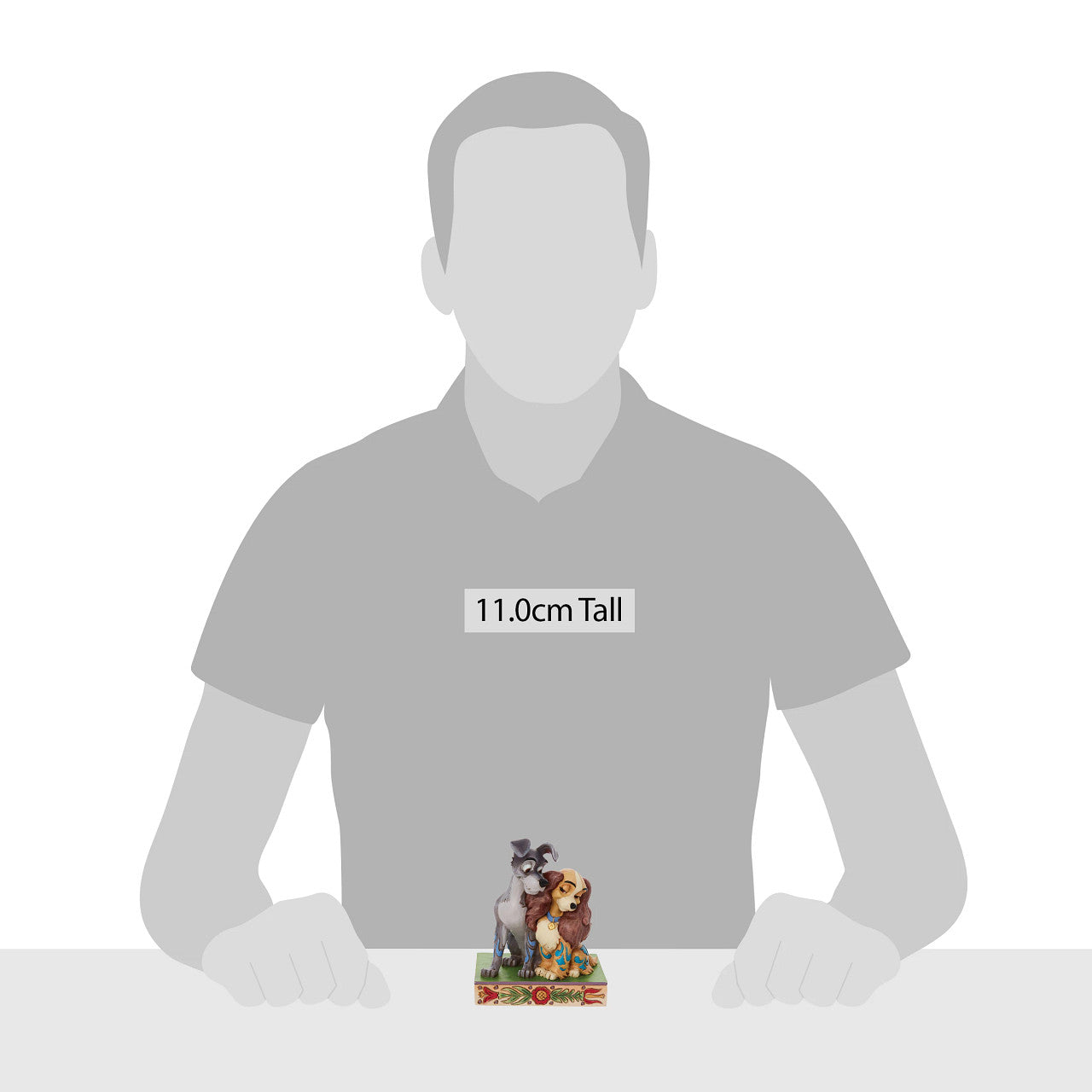 With a love story as pure as gold, this pair of precious pups snuggle together sweetly. With intricate Jim Shore rosemaling and inspiring intimacy, this Lady and the Tramp piece steals hearts. This enchanting piece is a charming addition to any room.