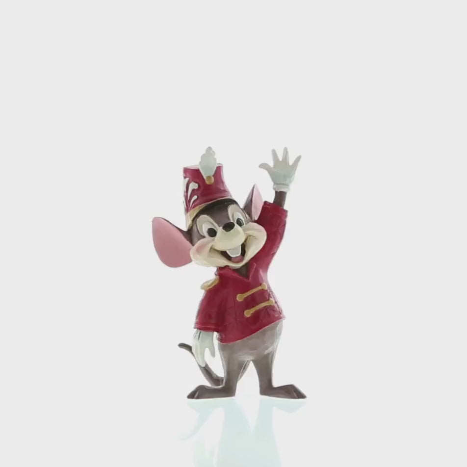 Timothy Q. Mouse is the beloved guardian and mentor of Dumbo, the flying elephant, from Disney's 1941 animated feature film. With a heavy Brooklyn accent and chipper disposition, Timothy waves in this dashing miniature by Jim Shore.