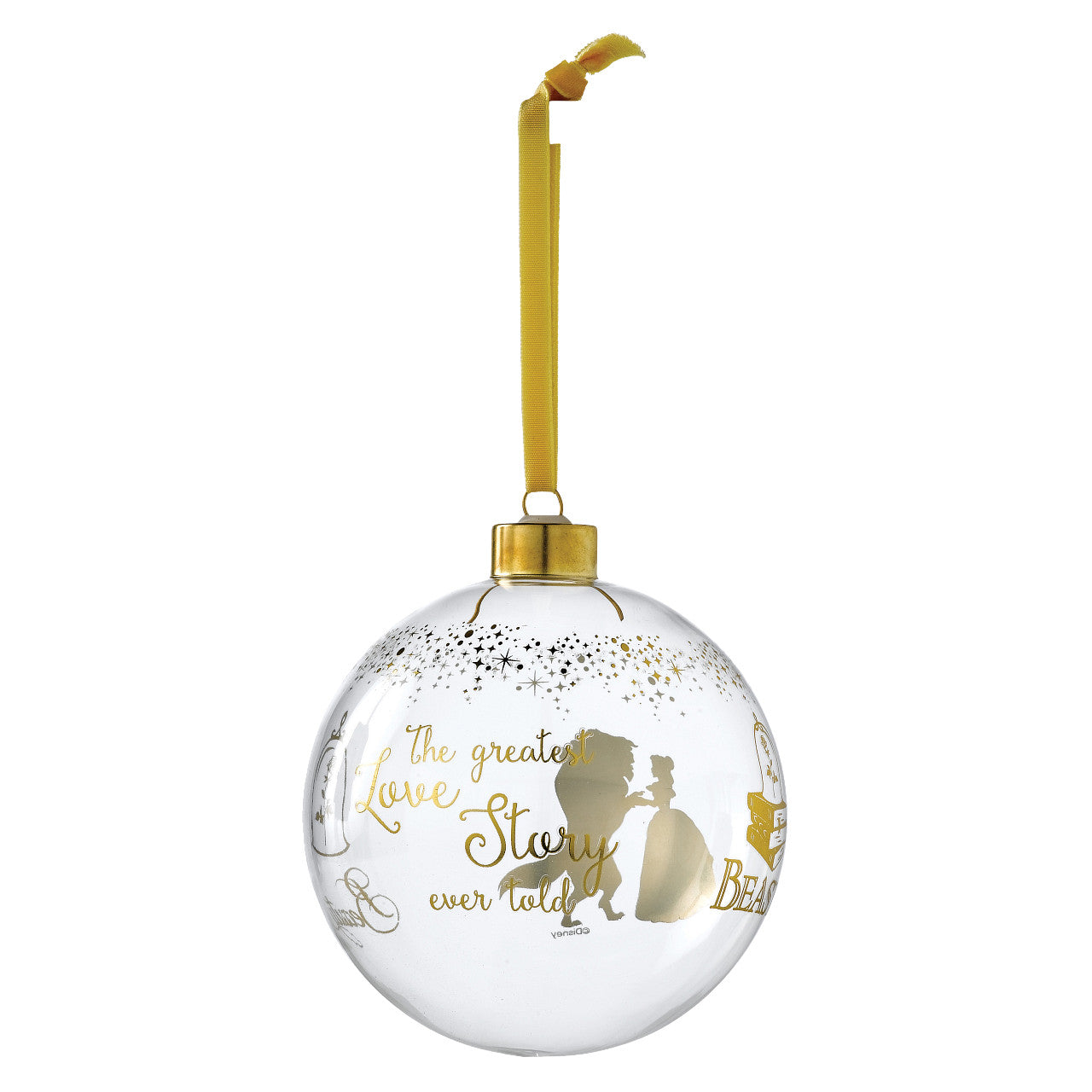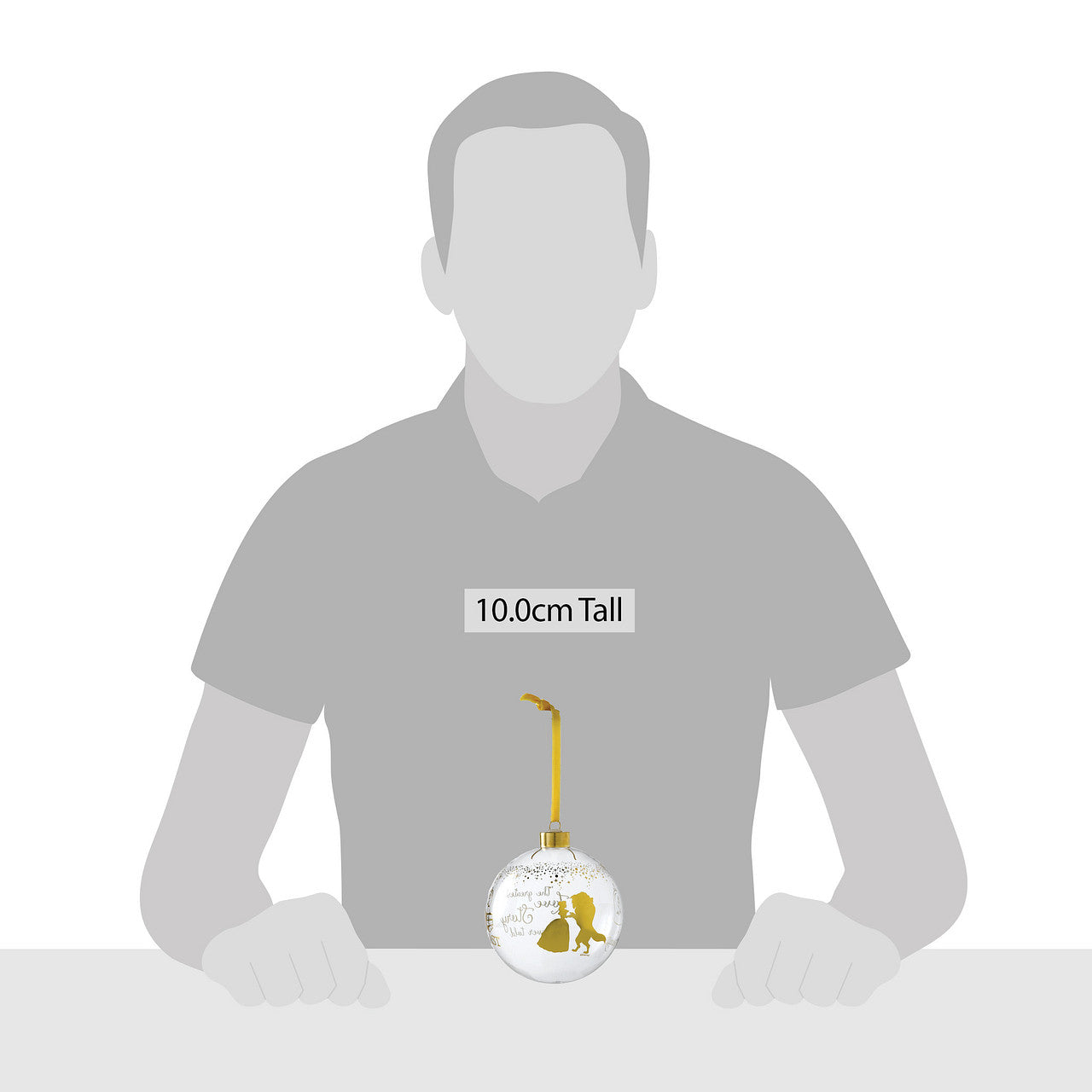This glass Beauty and the Beast bauble is the perfect gift to remind the happy couple of their love story. The bauble is strung with gold ribbon and is presented in a Disney branded gift box. Not a toy or children's product. Intended for adults only.