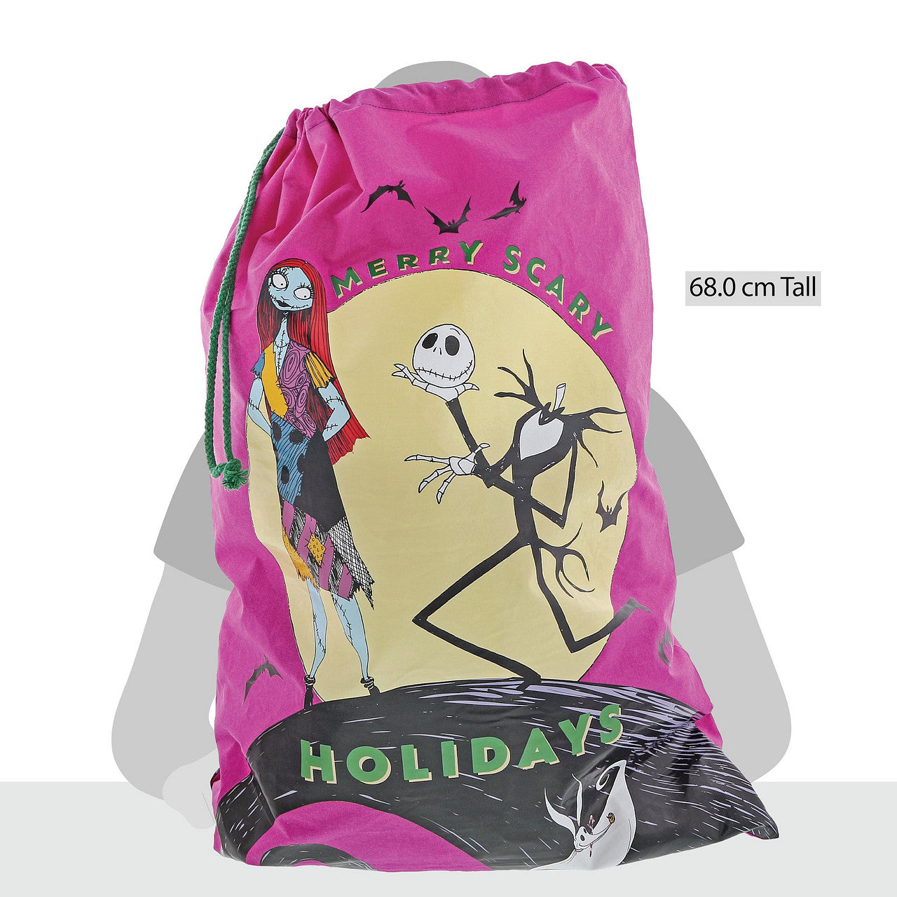 Celebrate Christmas or Halloween with this Nightmare Before Christmas sack. Presented with a giftable hangtag this wonderful sack creates a unique gift, which can be enjoyed year after year. Material: 100% Cotton featuring a ribbon loop to tie.
