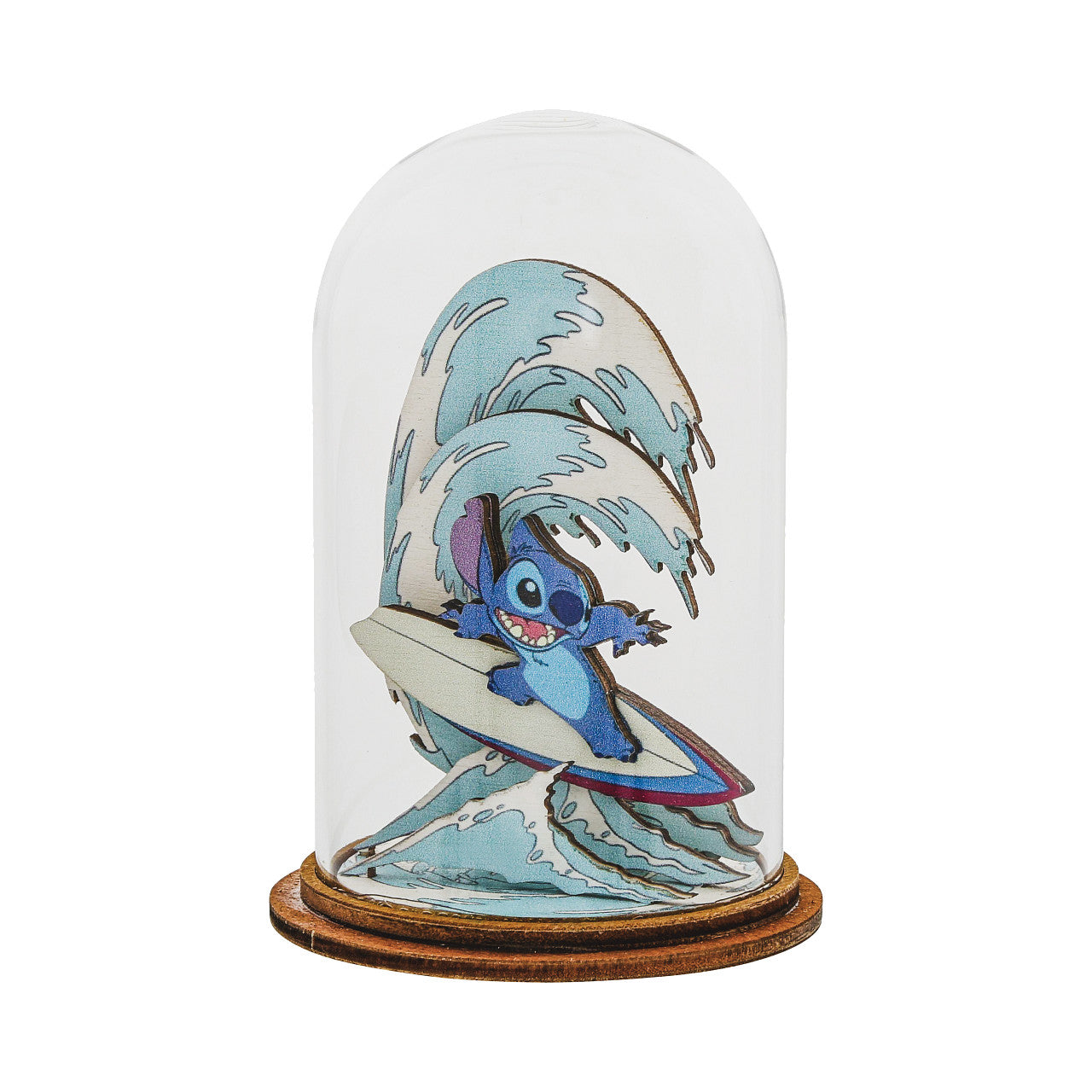 This beautifully layered figurine makes you feel that you are right there catching a wave with Stitch himself. Perfect keepsake for any Lilo and Stitch fan. This classic, decorative Kloche will make a stunning display in any home. Material: Glass with a wooden base. Packaging: Presented in a branded unique giftbox.