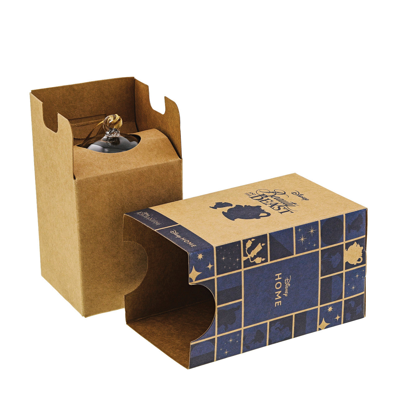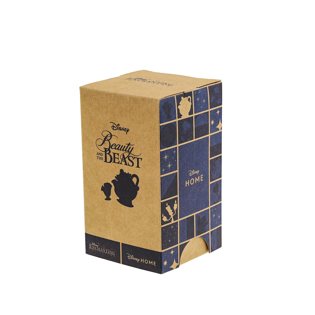 This delightful wooden decoration that captures the essence of Disney's classic Beauty and the Beast film. This glass dome, decoration encases all the loyal servants from the enchanted castle itself, including Cogsworth, Lumiere, Mrs Potts and most importantly everyones favourite Chip. The gold ribbon feature allows you to hang this special ornament all year round as well as Christmas tree. This classic vintage style, decorative Kloche will make a stunning display in your home. Material: Glass with a wooden base. Packaging: Presented in a branded unique giftbox.