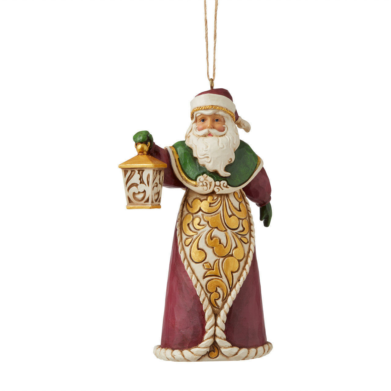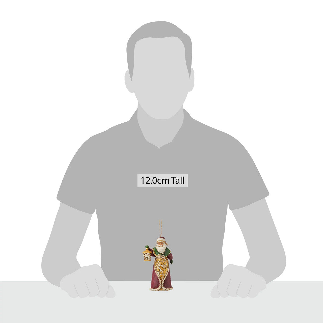 This festive hanging ornament features Santa Claus, dressed in red and green, holding a lantern to light up your holiday season. A perfect addition to any holiday décor, this ornament is sure to bring cheer and joy to your home!