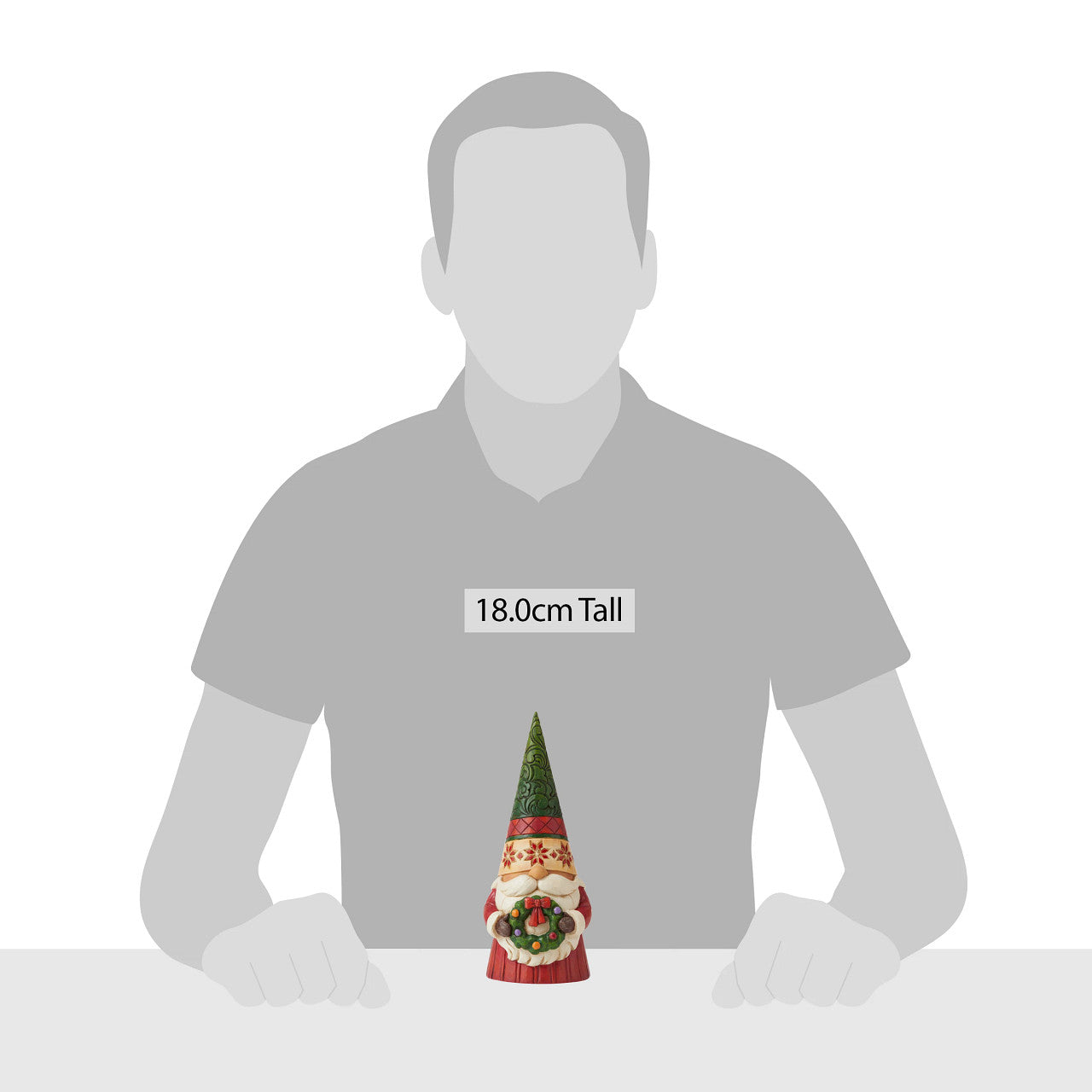 There's no place like gnome for Christmas! Celebrate the season with this incredibly crafted holiday gnome by Jim Shore. Patterned in delicate engravings and flowers, this gnome holds a colorful Christmas wreath with a mustache hidden smile.