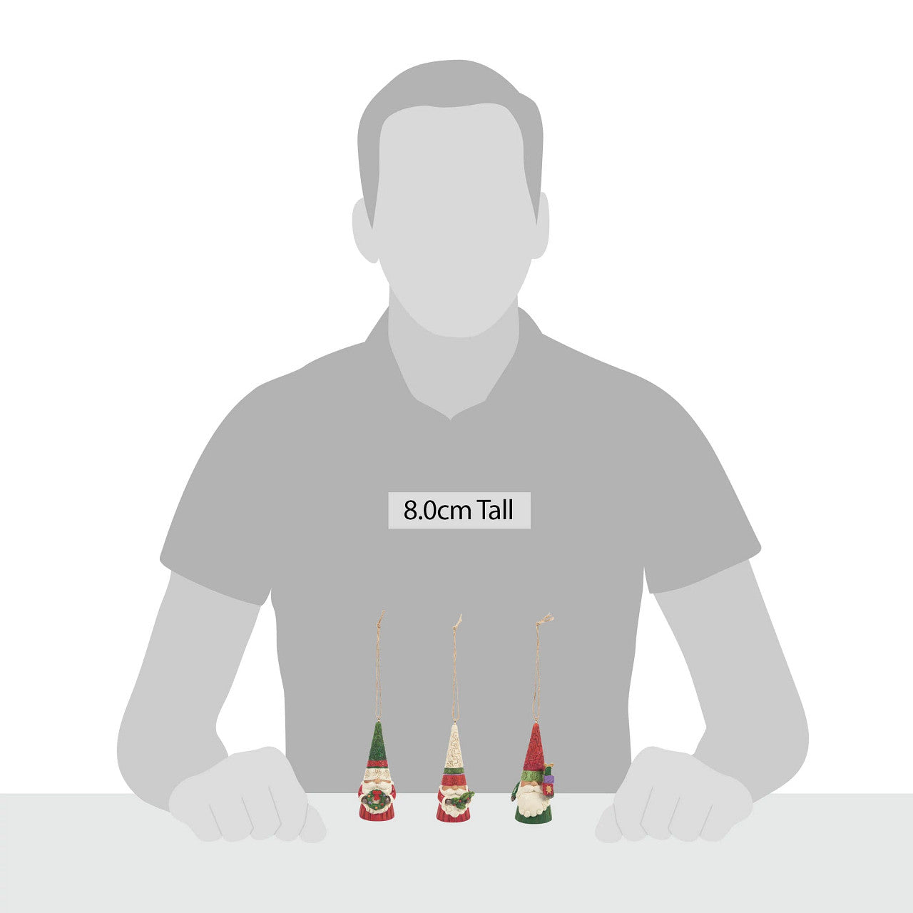 There's no place like gnome for Christmas! Celebrate the season with this incredibly crafted holiday gnome by Jim Shore. Patterned in delicate engravings and flowers, this set of three gnome ornaments delights with holiday cheer.