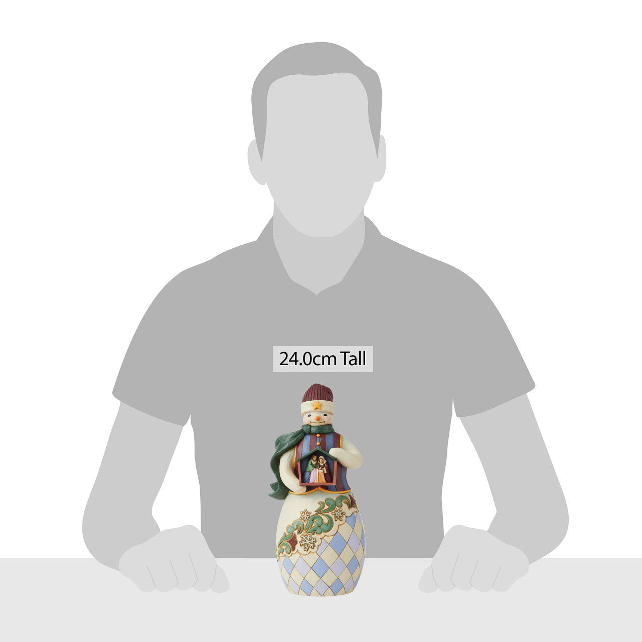 This beautiful Embrace the Merry Miracle Figurine features a snowman holding a nativity stable in his arms with a star on his winter hat. Crafted from the finest materials, it's an eye-catching addition to any home's holiday decor. Perfect for celebrating the season with the true spirit of Christmas.