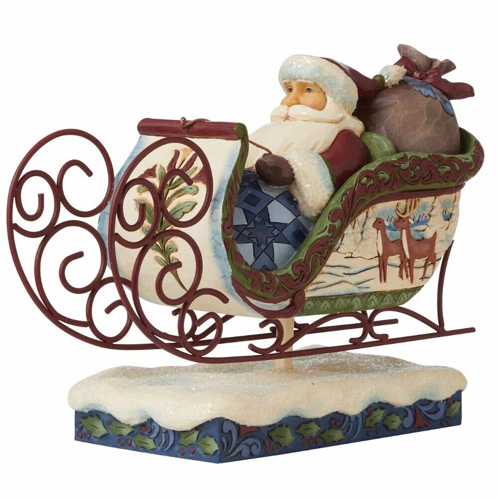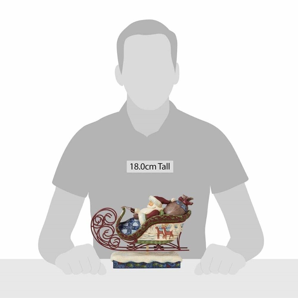 This figurine is a delightful reminder of the festive season. Crafted with intricate detail, it features a Victorian Santa in a sleigh, complete with reindeers on the sleigh itself and finished with snowy sugar glitter. The perfect addition to your holiday decor.