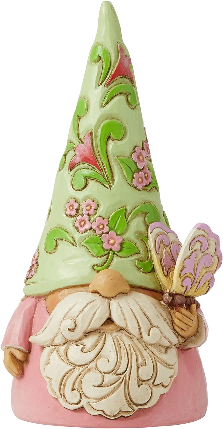 For centuries, gnomes have been symbols of good luck, they are thought to provide protection with their delightful charm. This Jim Shore gnome wearing a floral hat finds a surprise guest visiting his garden, a beautiful butterfly.