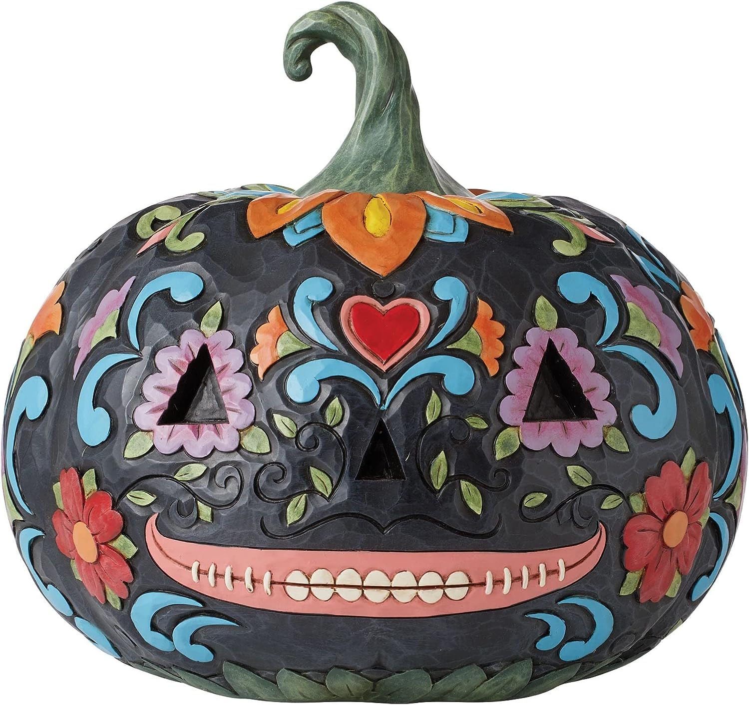 Handcrafted in breathtaking detail, this striking Day of the Dead Jack-O-Lantern Figurine is beautifully decorated in Jim Shore's subtle combination of traditional quilt. Packaged in a branded gift box.