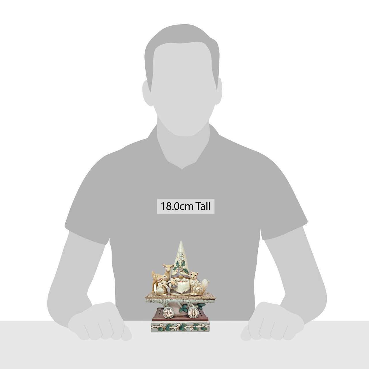 Rolling Gnome for Christmas - White Woodland Gnome With Animals On Train Car Figurine