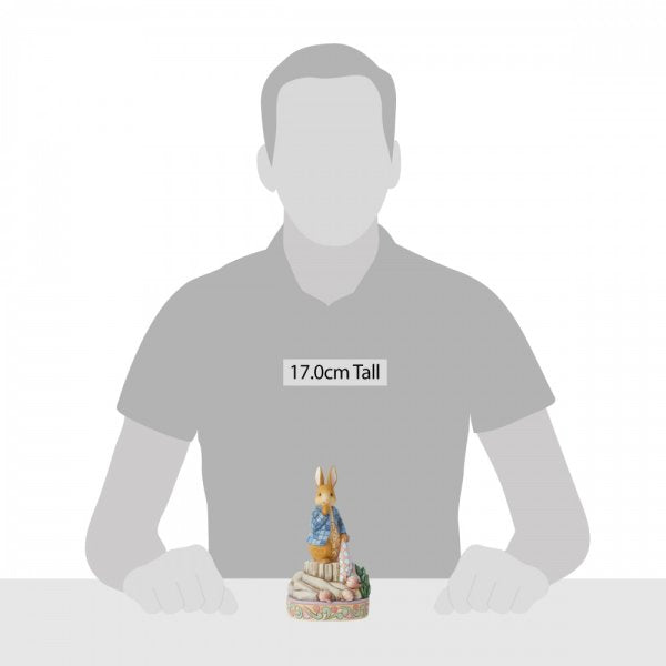 Always exploring in and around the garden, Peter Rabbit plays amongst the onions in this sweet figurine by Jim Shore. Wearing his iconic blue jacket Peter holds his red handkerchief inquisitively in the onion plot, indecisive on his next snack.