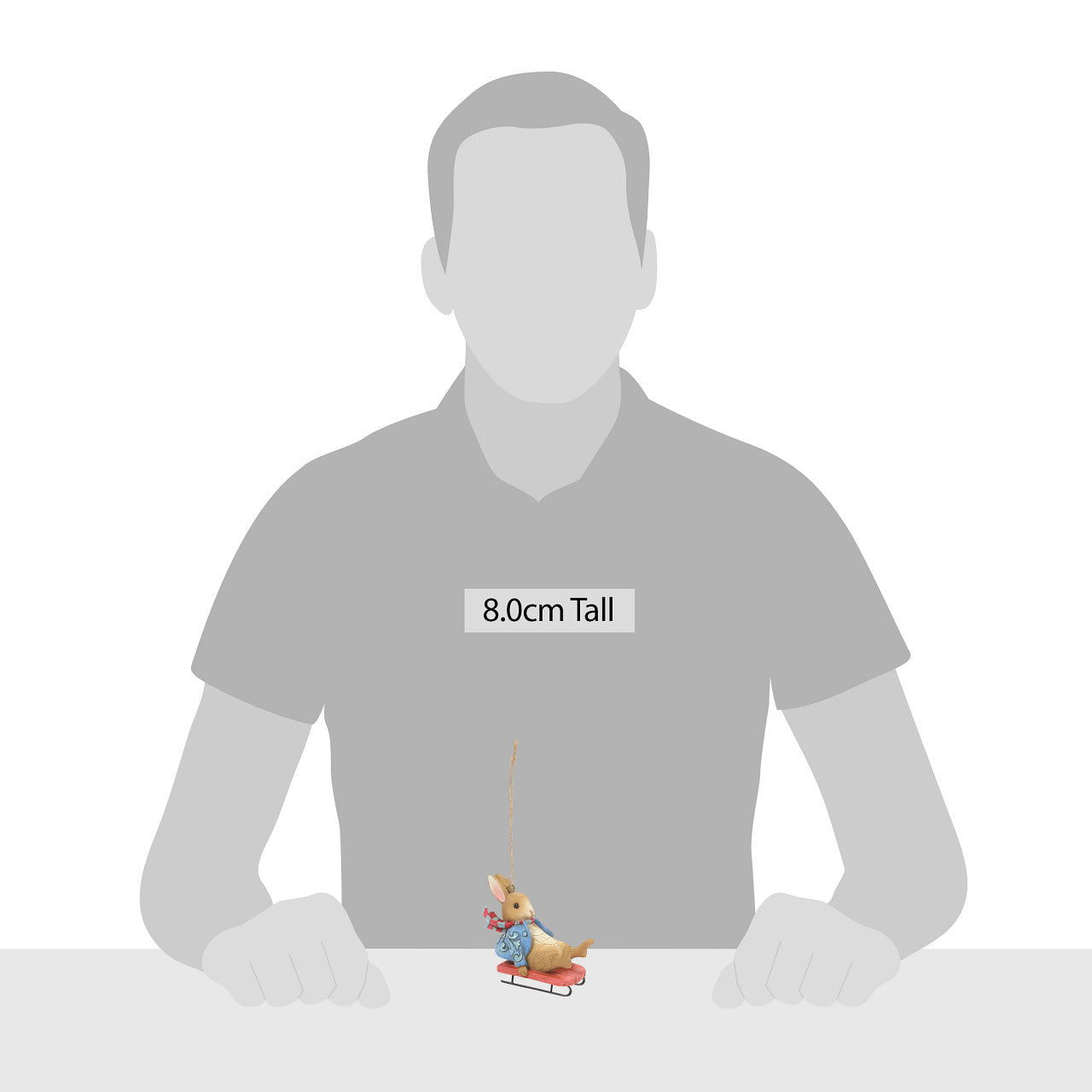 This charming Peter Rabbit hanging ornament will make the perfect gift for any Beatrix Potter lover. Donning his classic blue jacket, the beloved rabbit is styled in beautiful Jim Shore patchwork detail around his coat, sitting on a sledge, also making it a fabulous additional Christmas decoration.