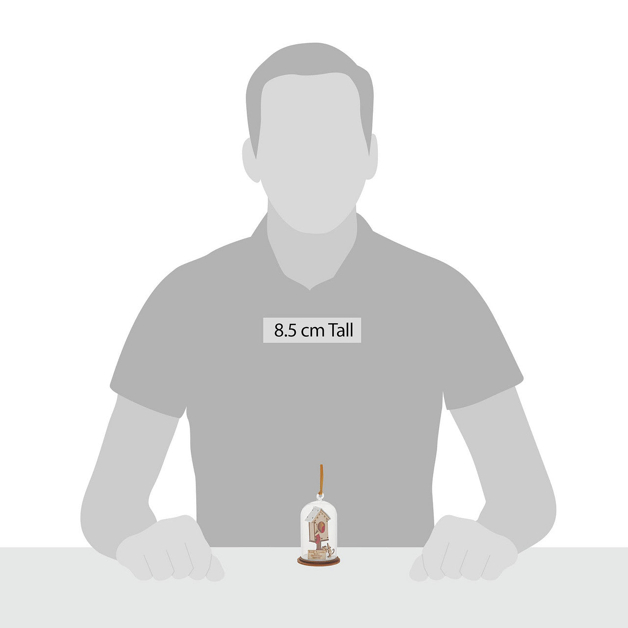The Spirit of Christmas. A collection of delightful wooden decorations that capture the essence of that special time of year. This glass dome, Christmas decoration encases a little mouse, adorned with bird in his house and ribbon to help hang off your Christmas tree. This classic vintage style, decorative Kloche will make a stunning display in your home. Material: Glass with a wooden base. Packaging: Presented in a branded unique giftbox.