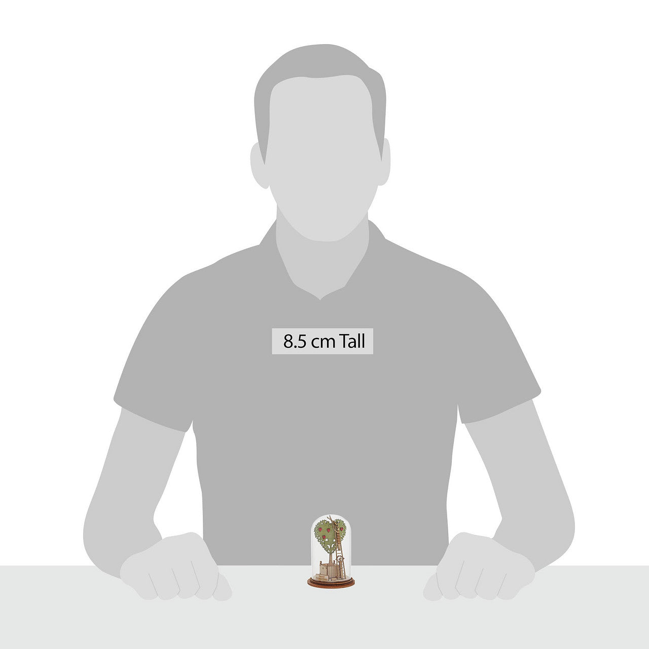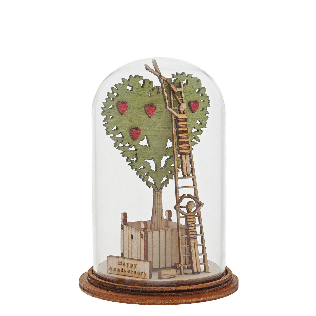 Greetings from Tiny Town. A town where characters are no bigger than a matchstick and a place where celebrating the good times, become an everyday event. This glass dome decoration encases A happy couple, adorned a huge blossoming tree. This classic vintage style, decorative Kloche will make a stunning display in your home. Material: Glass with a wooden base. Packaging: Presented in a branded unique giftbox.