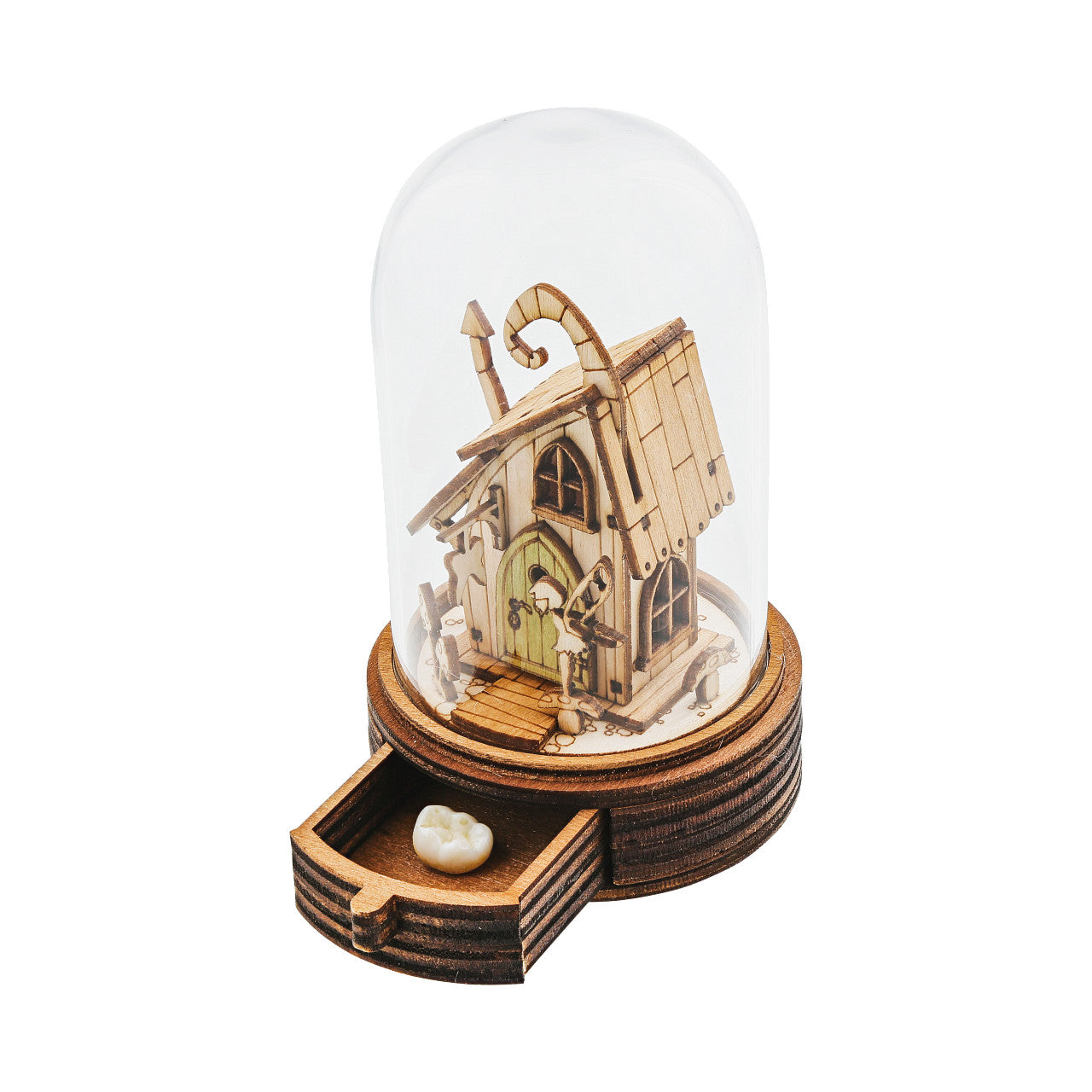 Everyone knows the story of the Tooth Fairy and now Kloche has a new way to bring that magic to your children. This glass dome decoration encases a detailed miniature of the Tooth Fairy themself infront of their Fairy home. What sets this apart from other pieces in the collection, is the little drawer built into the bottom, the perfect size for those lost teeth or a little treat from the Fairy. This classic, vintage style, decorative Kloche will make a stunning display. The wood is produced using a sustainable source and the packaging is biodegradable.