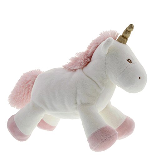 GUND is proud to introduce Luna - a sweet unicorn who makes playtime with baby magical! This 7" plush rattle format of Luna, with her pink mane and golden horn, makes pleasant rattling noises as baby plays for added interactive value and sensory input. This cute unicorn has blush pink colours with slight purple undertones and rose gold metallic hints running throughout the super soft fabric. A happy companion for little cuddlers. This item is suitable from birth, machine washable and CE marked