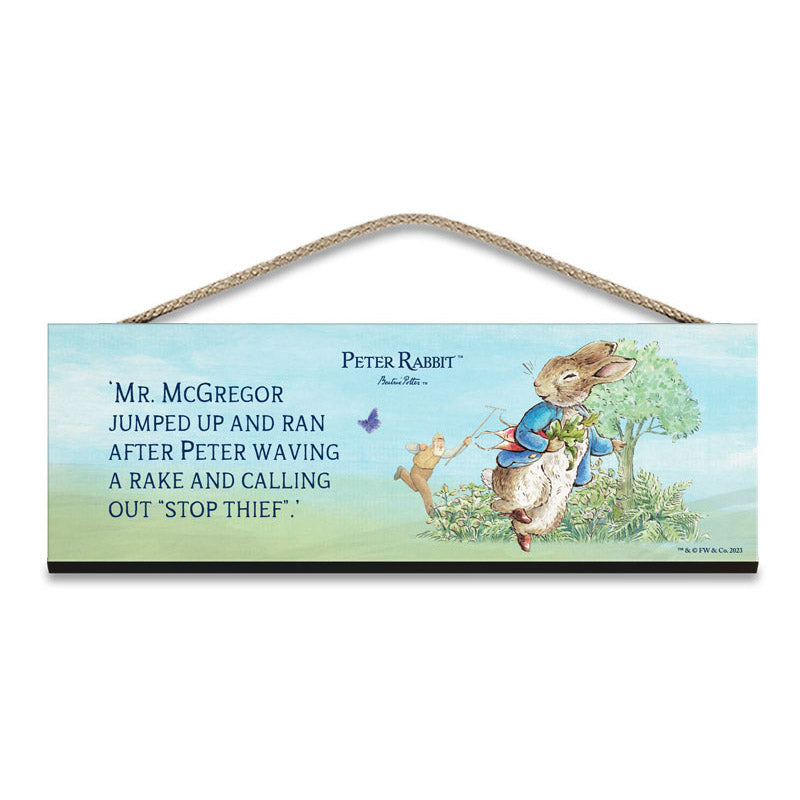 Beatrix Potter - Peter Rabbit - Mr McGregor jumped up and ran after Peter… (Wooden Sign)