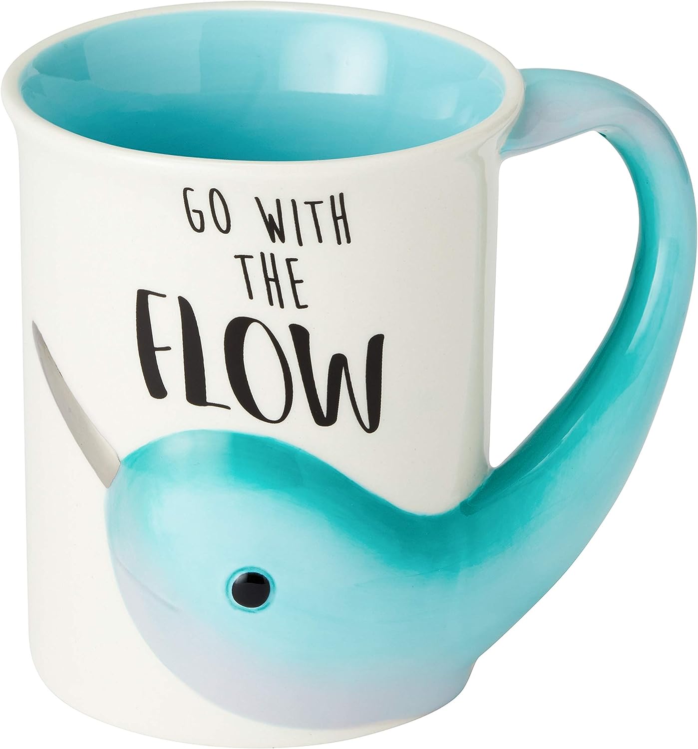 Narwhal Mug. Message: Go with the Flow, back reads: Be so awesome that some may think you are a Myth