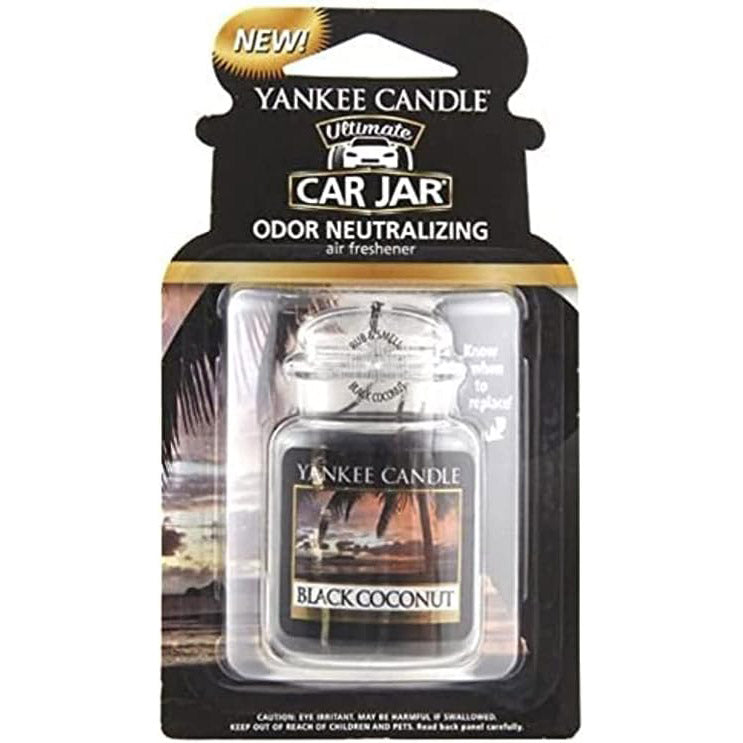 Black Coconut. The fragrance notes are as follows: Top: Fruity Pineapple, Coconut; Mid: Coconut Blossom; Base: Powdery Notes, Woody Notes, Musk. Scents of rich coconut, cedarwood and island blossoms promise an evening of luxurious tranquillity. Embrace every moment on the road with fragrances that transform everyday trips into enjoyable moments. Each Car Jar Ultimate fills your car with true-to-life fragrances - and its iconic look brings smiles each day. Refresh your senses with new scents for every season, every mood. Each Car Jar Ultimate delivers authentic Yankee Candle fragrance for up to four weeks. No need to mark your calendar - when the fragrance shrinks below the label, it's time for a new one. Also great for neutralising odours and freshening the air in small spaces such as gym lockers, cupboards and pet areas.